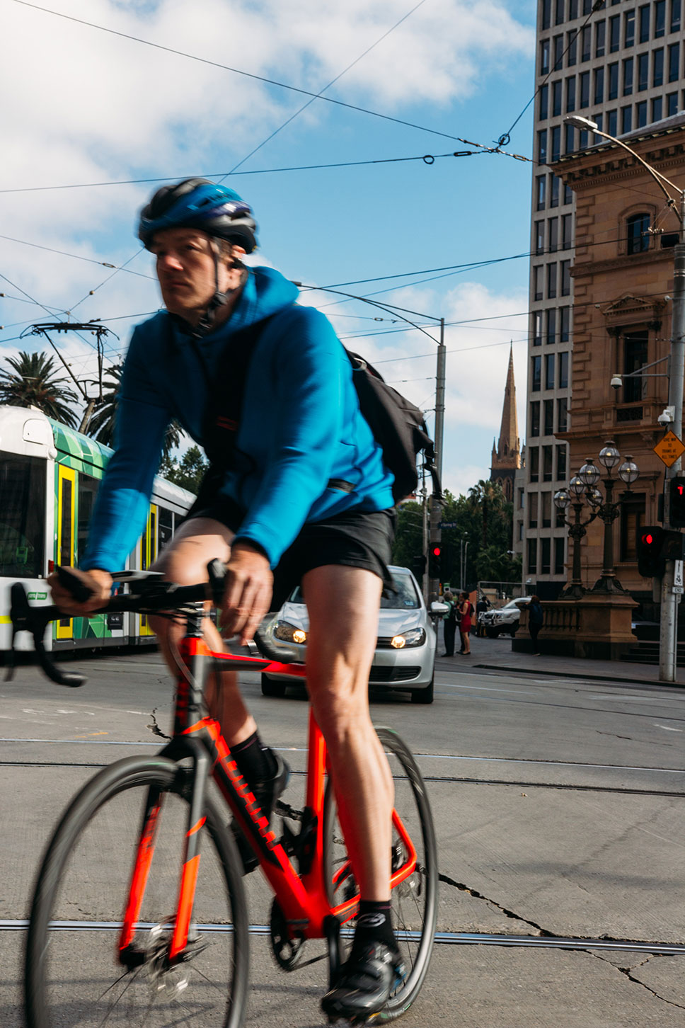 Blurry Melbourne commuter.